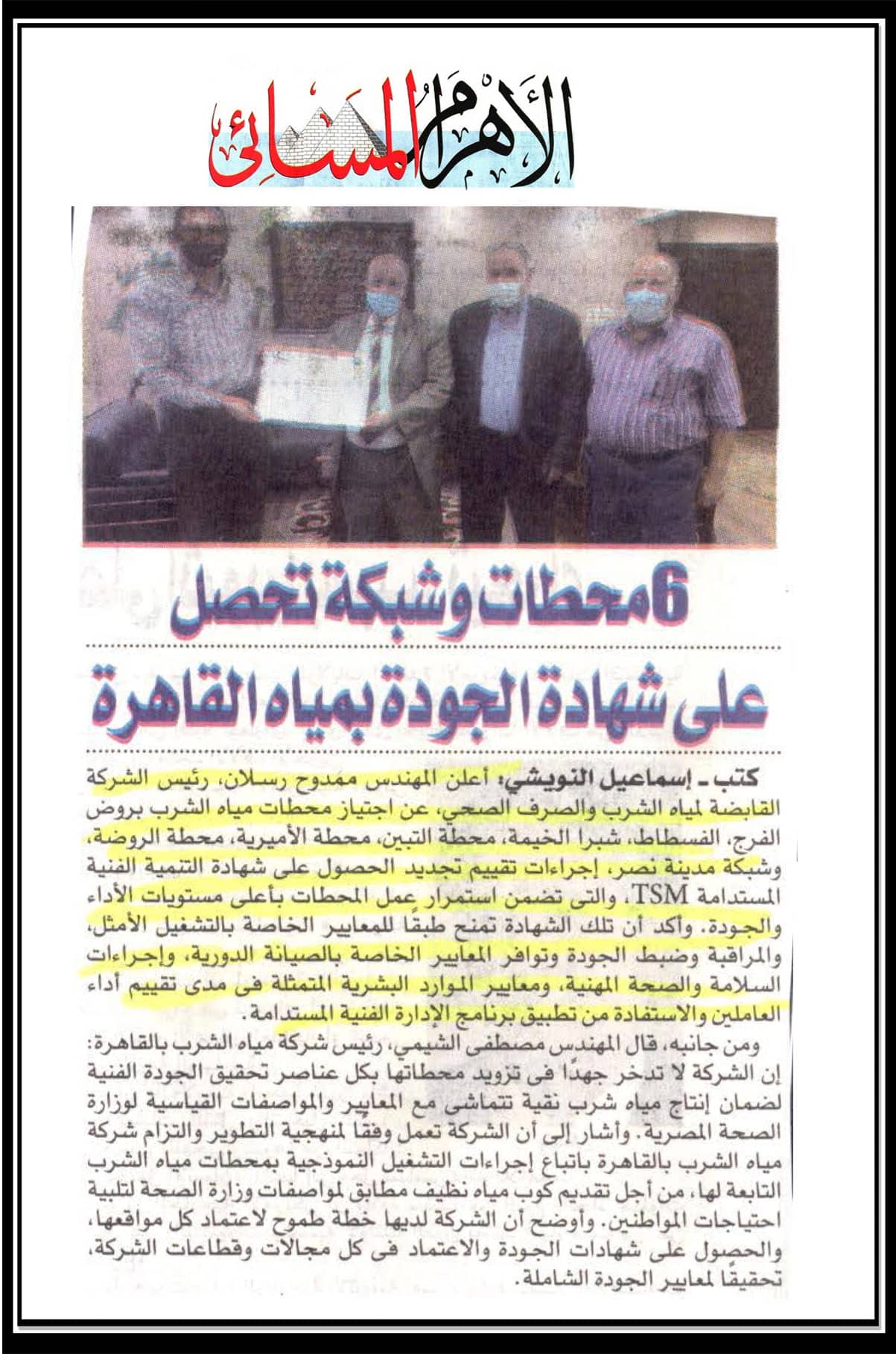 6 محطات وشبكة تحصل على شهادة الجودة بمياه القاهرة