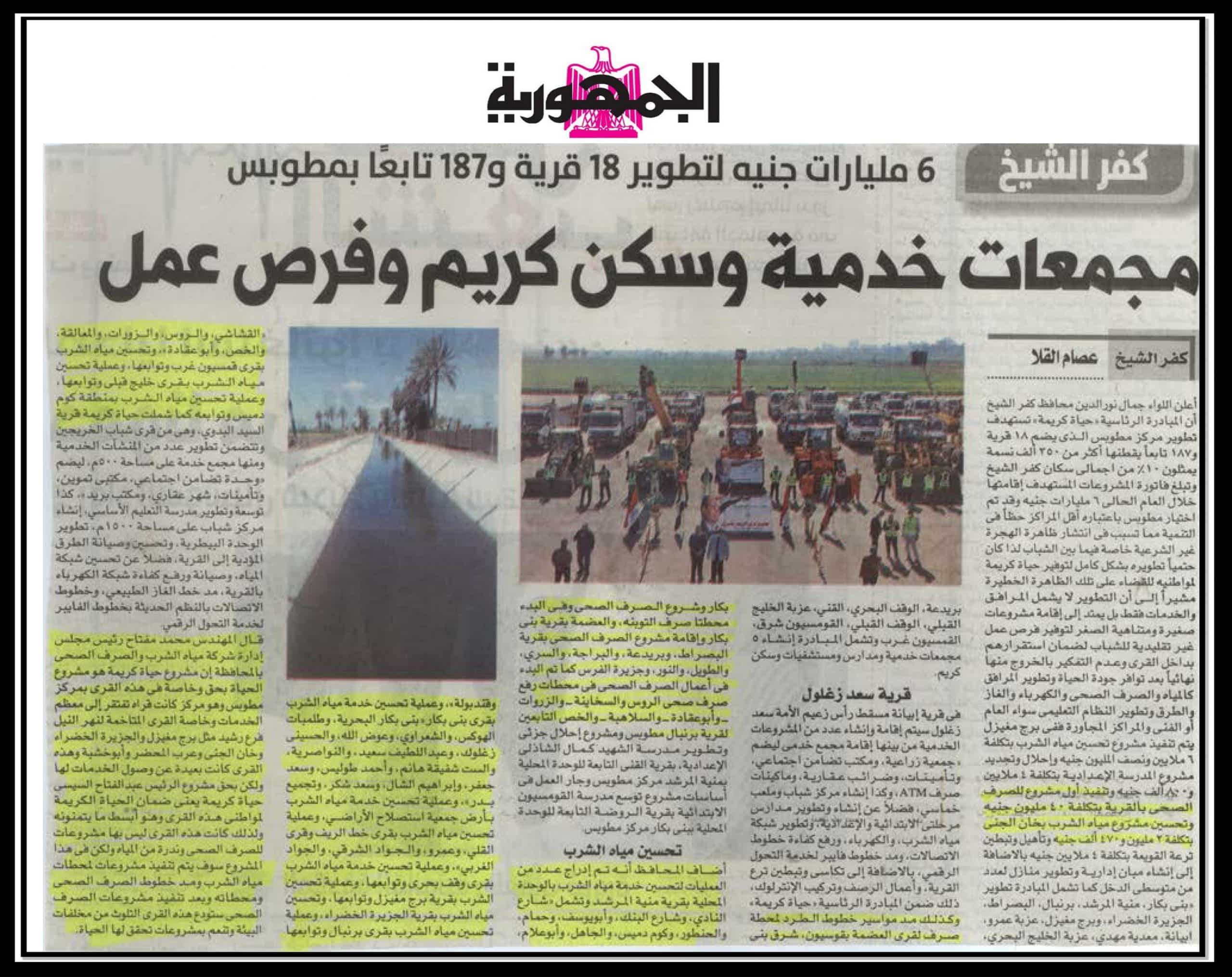 6 مليارات جنية لتطوير 18 قرية و 187 تابعا بمطوبس