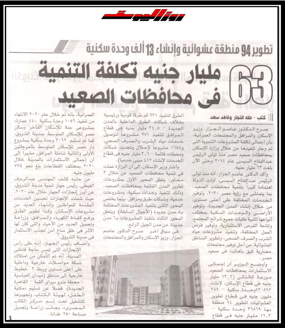63 مليار جنية تكلفة التنمية في محافظات الصعيد .
