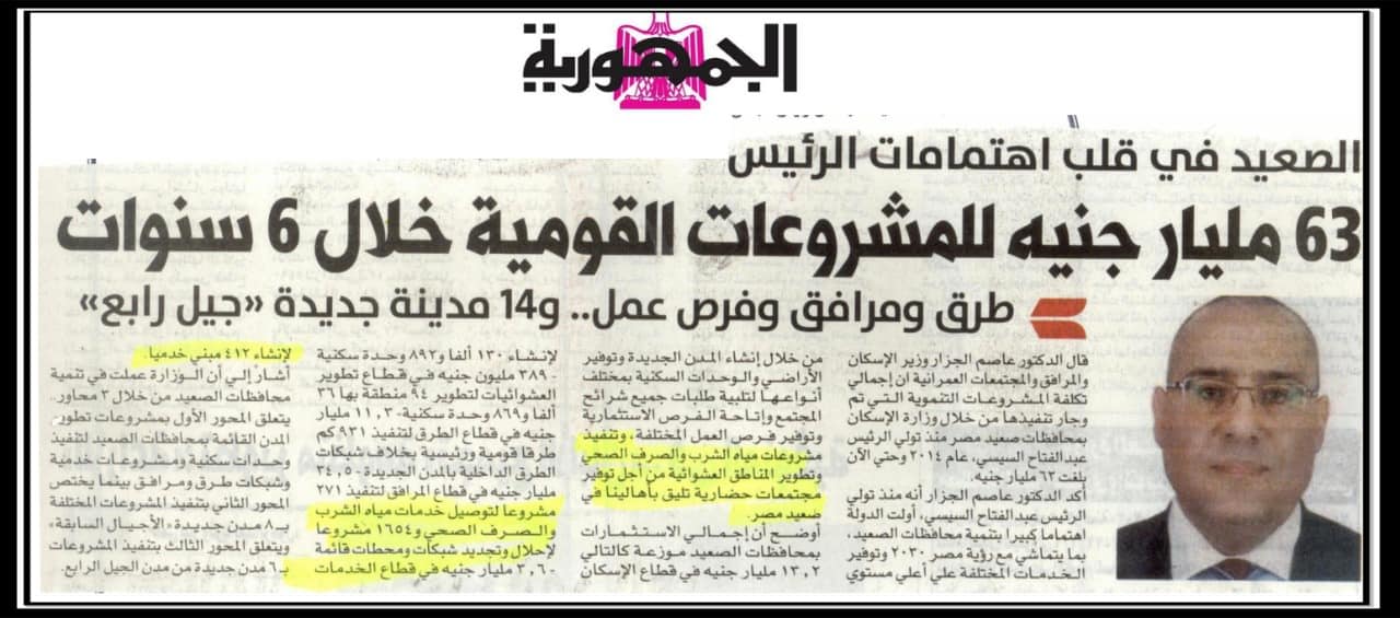 63 مليار جنية للمشروعات القومية خلال 6 سنوات .