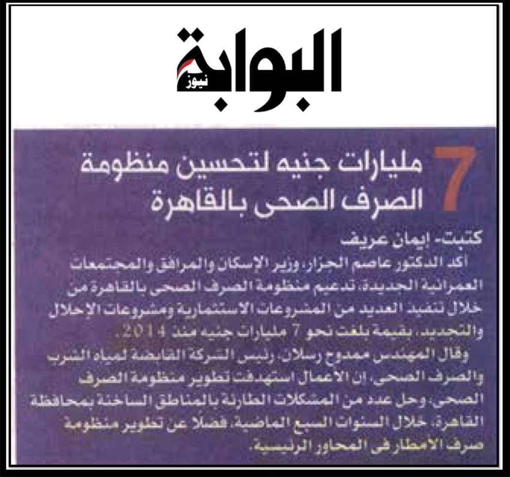7 مليارات جنية لتحسين منظومة الصرف الصحي بالقاهرة