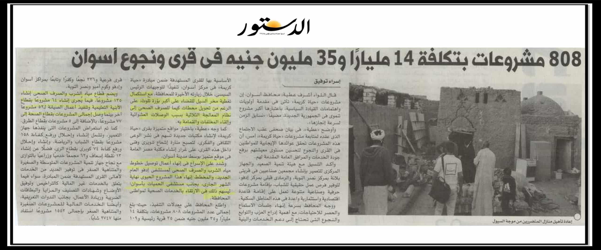 808 مشروعات بتكلفة 14 مليارا و 35 مليون جنية في قرى ونجوع اسوان