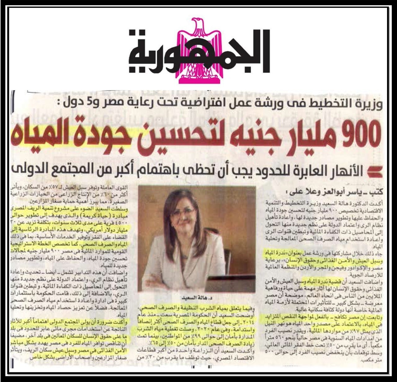 القابضة للمياه تشارك فى جائزة مصر للتميز الحكومي وتؤكد: التميز نهج مؤسسي مستدام