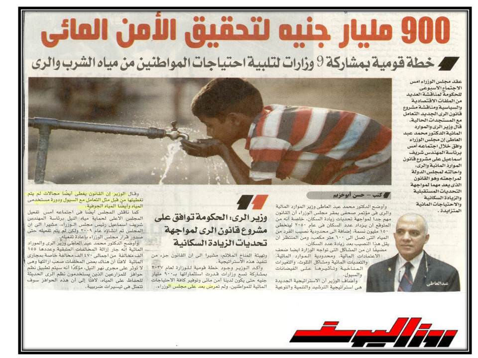 900 مليار جنية لتحقيق الامن المائي .
