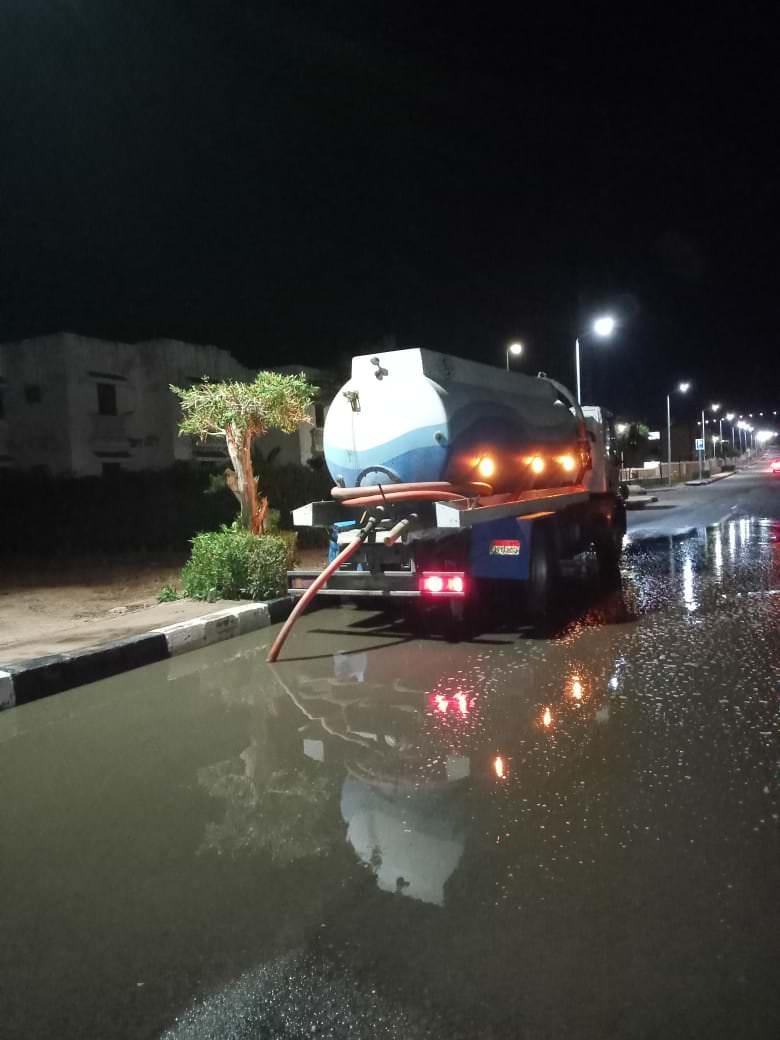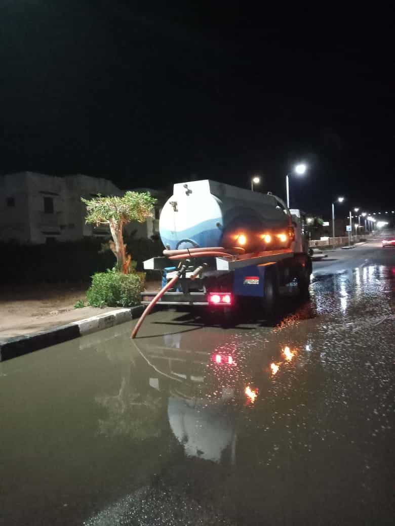 استمرار أعمال سحب المياه بمدينة دهب ورأس سدر وشرم الشيخ ومدينة السلام.