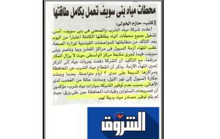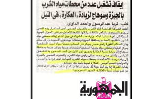 ايقاف تشغيل عدد من محطات مياه الشرب بالجيزة وسوهاج لزيادة العكارة في النيل ….2016/11/1 جريدة الجمهورية 01/11/2016|