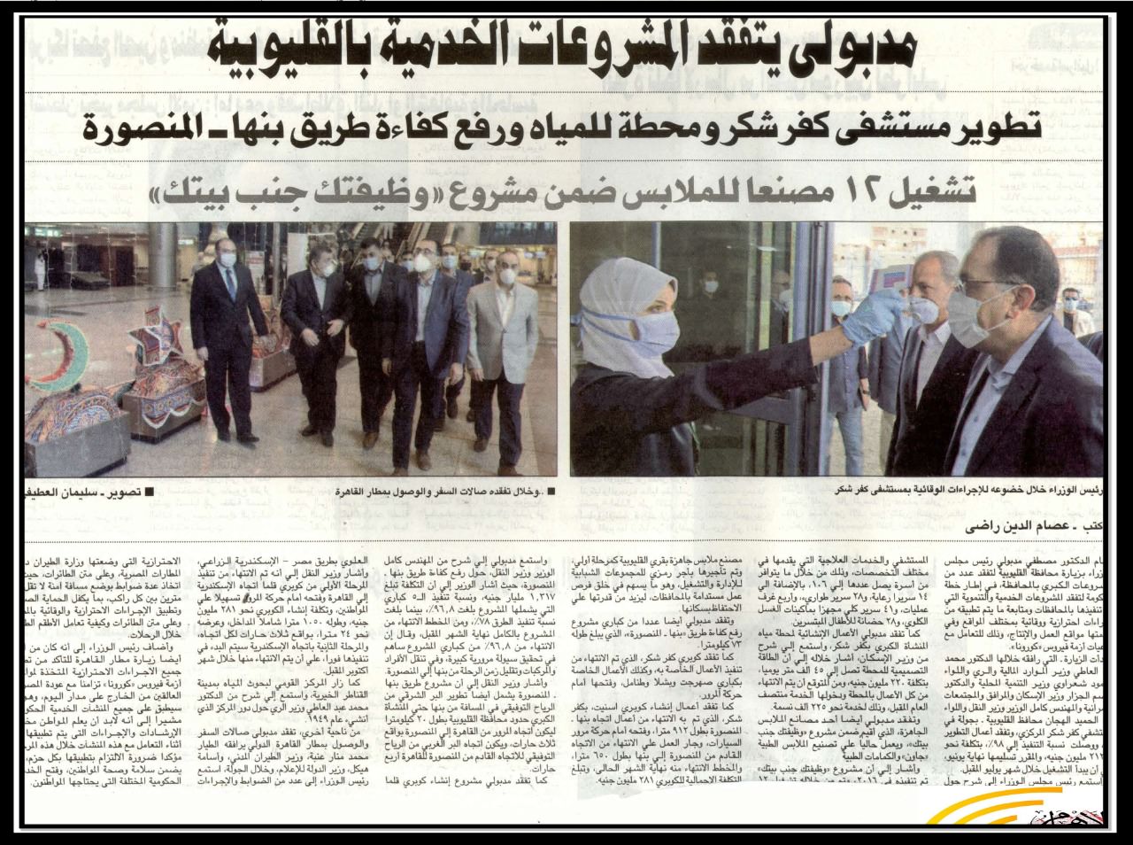 مدبولي يتفقد المشروعات الخدمية بالقليوبية .