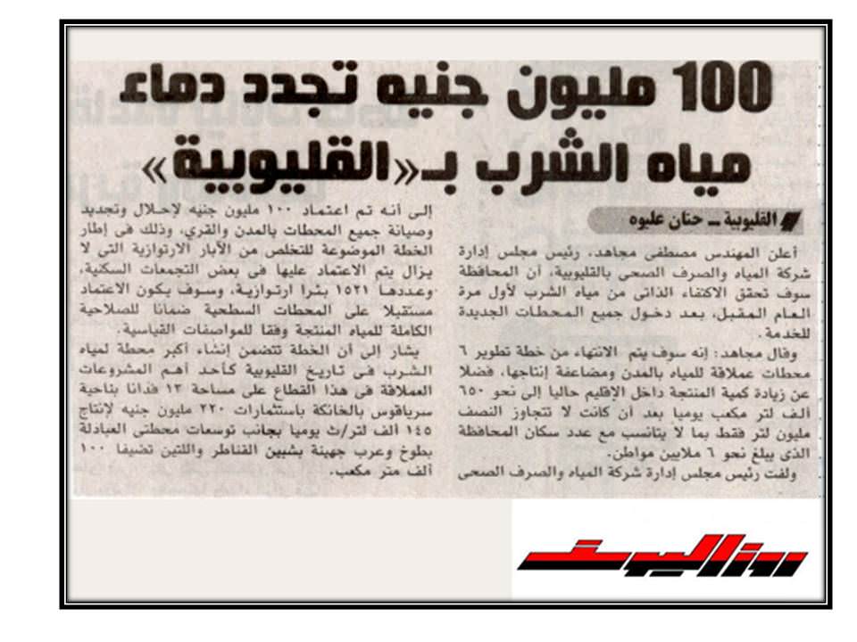 100 مليون جنية تجدد دماء مياه الشرب بالقليوبية ..2017/2/17