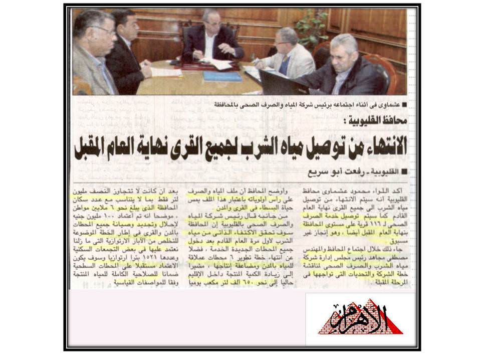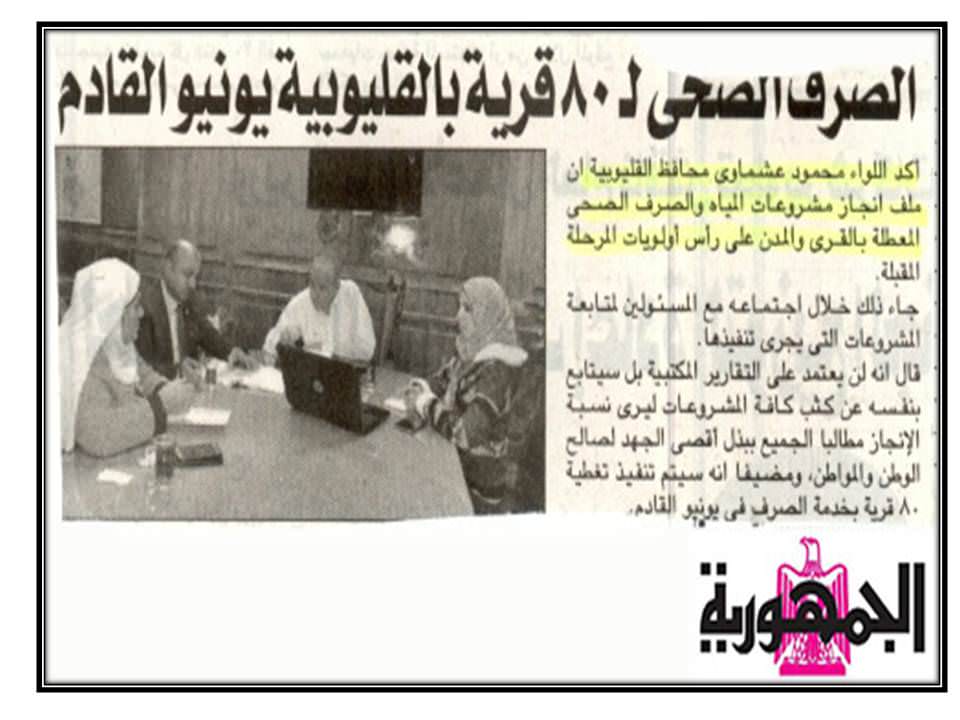 الصرف الصحي لـ 80 قرية بالقليوبية يونيو القادم …..2017/2/26