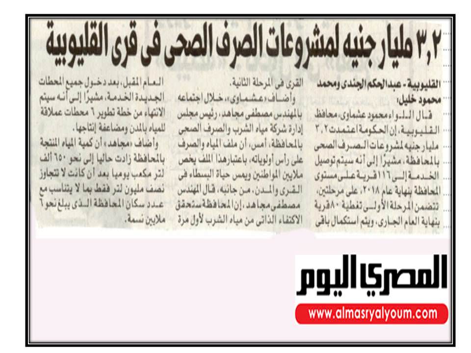 3.2 مليار جنية لمشروعات الصرف الصحي في قرى القليوبية …..2017/3/5
