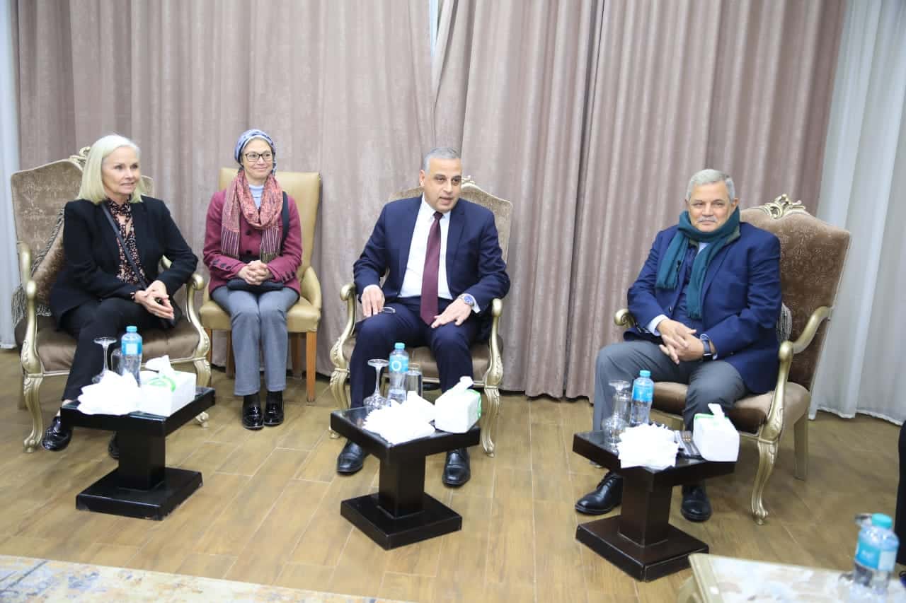 محافظ سوهاج يستقبل مديرة بعثة الوكالة الامريكية للتنمية الدولية بمصر ورئيس القابضة للمياه استعدادا لافتتاح مشروع صرف صحى الشوكا بطما